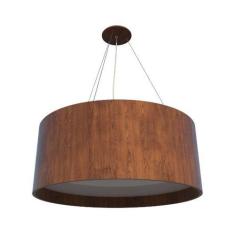 Lustre Pendente Redondo Cilíndrico 60X22cm Em Madeira Bivolt