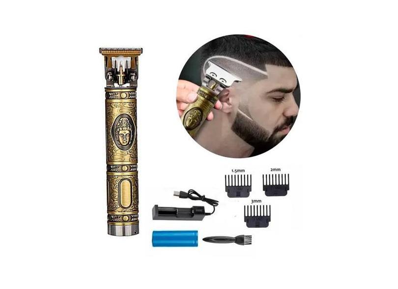 Barbeador Profissional Homens Dourado Pé Disfarce 3 Pentes - Kemei