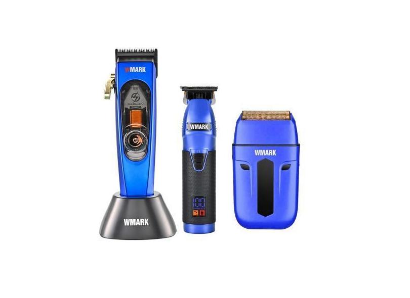 Kit 3 Maquina Cabelo Wmark NG 9004 NG 984 NG 318 Combo Azul, Bivolt