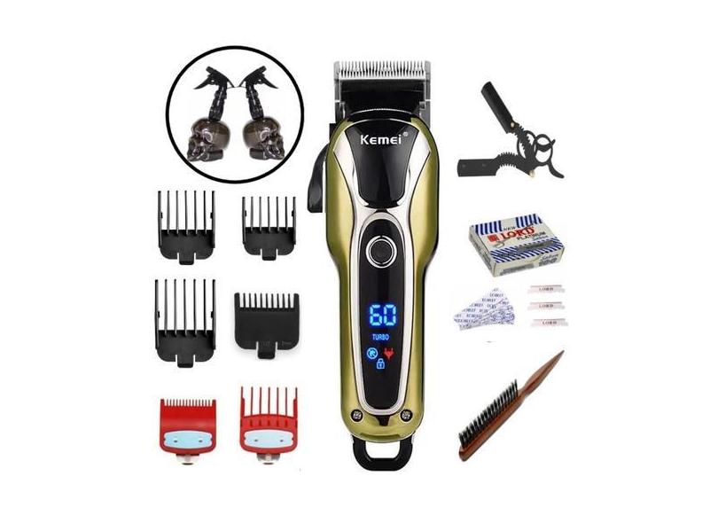 Kit Barbeiro Barbearia Maquina Potente Cortar Cabelo Navalha Escovinha