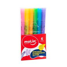 Marcador Pastel Glitter, Molin, 9099 - Bolsa c/ 6 Cores