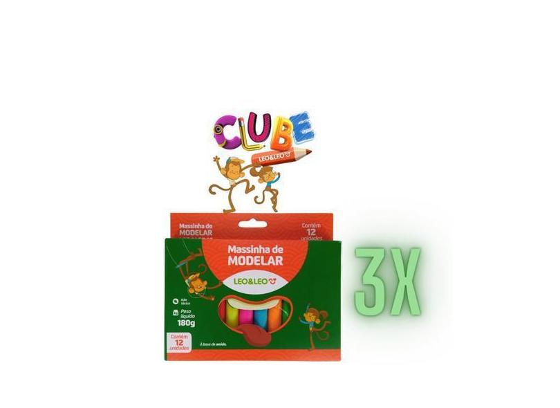 Kit C/3 Massinha De Modelar C/12 Cores Leo E Leo 180G - Leo&Leo