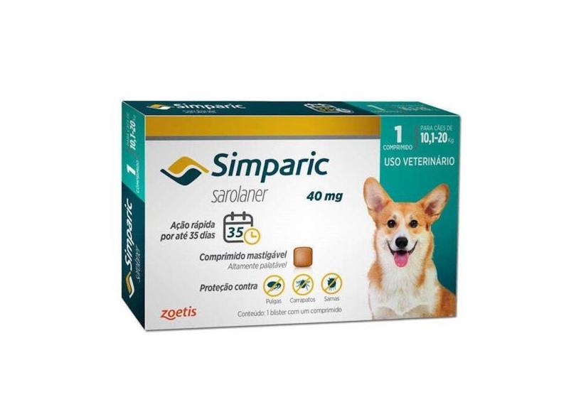 Antipulgas E Carrapatos Para Cães Simparic De 10,1 A 20Kg - Zoetis