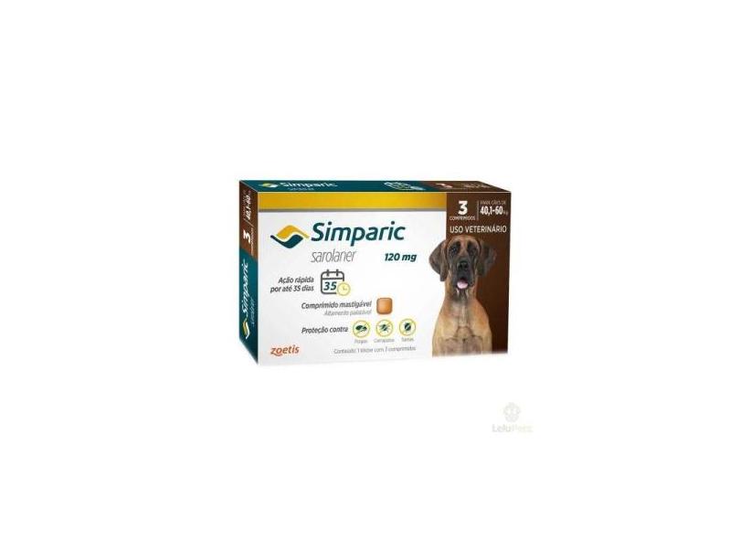 Antipulgas Zoetis Simparic 120mg para Cães 40 a 60 Kg - 3 Comprimidos