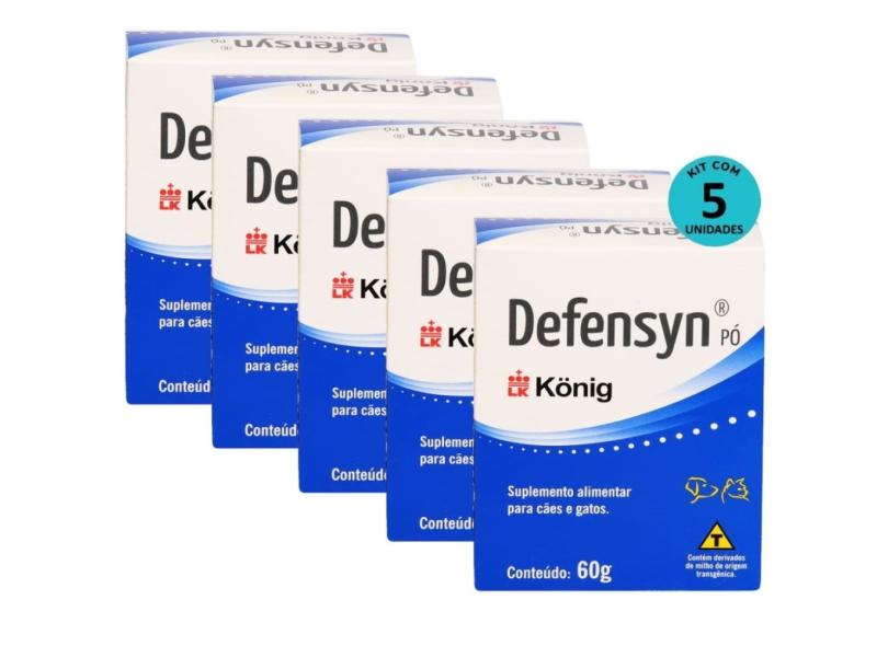 Kit 5 Suplemento Alimentar Defensyn Pó König 60g p/ Cães e Gatos