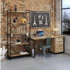 Conjunto Home Office Industrial 3 Peças 1 Escrivaninha 1 Estante e 1 G