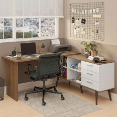 Escrivaninha Mesa de Escritório de Canto 3 Gavetas Branco/rustic Lisboa Madesa