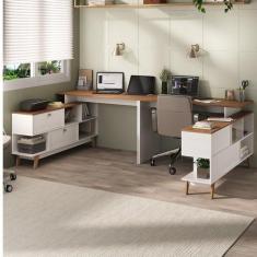Kit 2 Mesas para Escritório Escrivaninha em L Retrô 136x120cm Branco/nogal Branco