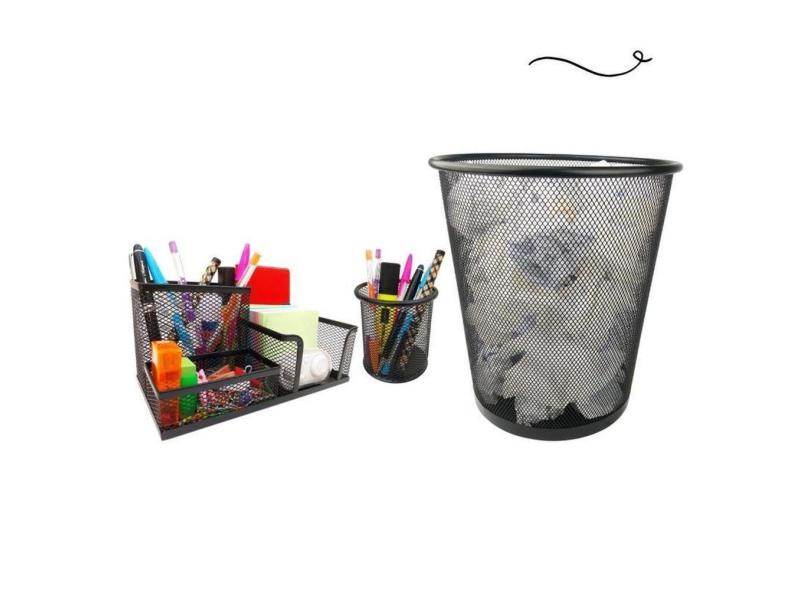 Kit Escritório Organizador Mesa Lixeira Porta Caneta Lápis