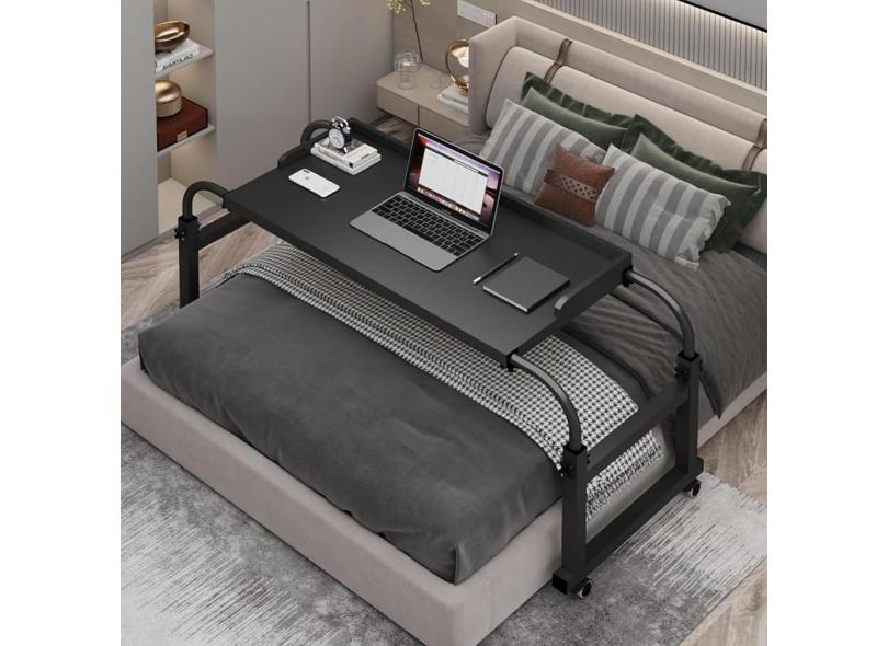 Mesa sobreposta com 4 rodas, mesa sobre a cama com altura ajustável de 65-95 cm Mesa médica rolante Mesa sobreposta Estação de trabalho de computador Mesa sobrecama para estrutura de cama du
