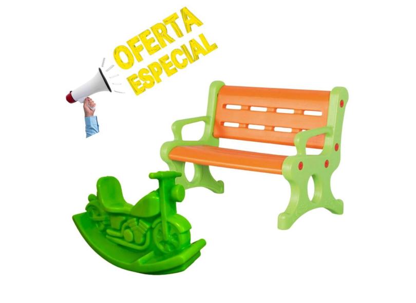 Banco Plástico 2 Lugares Kids + Motoca Gangorra Parquinho
