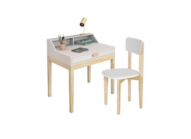 Mesa De Estudo Infantil Pés De Madeira Gaveta Nicho Mdf Com Cadeira Pa