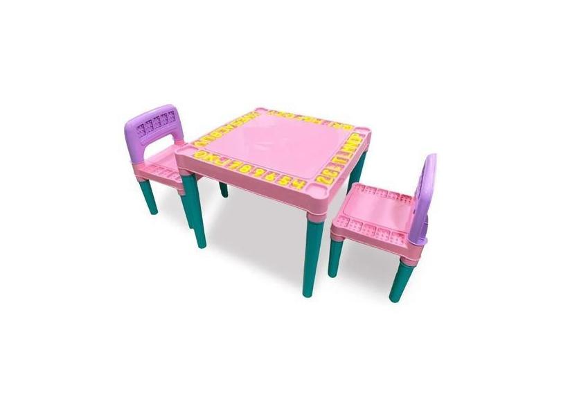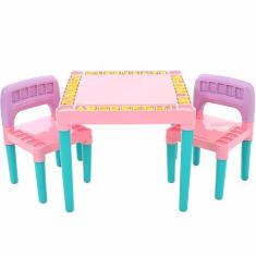 Mesa Infantil Com 2 Cadeira Rosa Educativa Para Crianças 3827 - Tritec