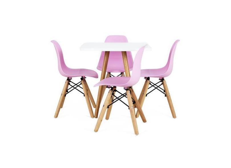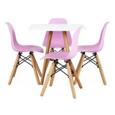 Mesa Infantil Quadrada 50cm Branca Com Pés De Madeira + 4 Cadeiras - G