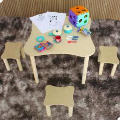 Mesinha Educativa Infantil Atividade De Madeira Com Banquinhos - Beto