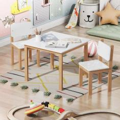 Mesinha Infantil Em Madeira Maciça Isa Com 2 Cadeirinhas Para Atividad