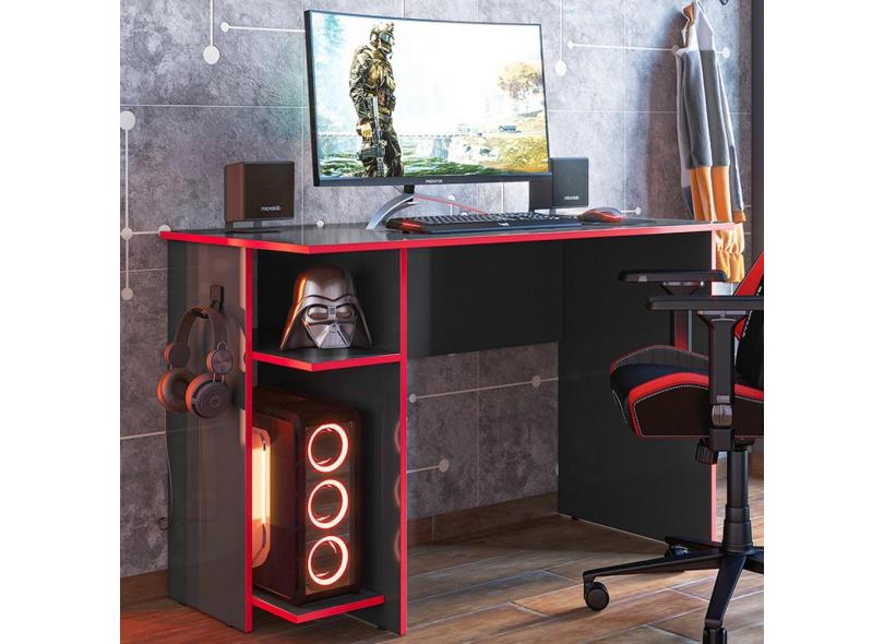 Mesa Gamer 2 Prateleiras Preto Fosco/vermelho 3875 - Qmovi