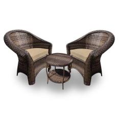Conjunto de Poltronas Fibra Sintética Berlim - 2 Poltronas + 1 Mesa Centro - Tecido Duna Deserto