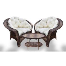 Conjunto de Poltronas Fibra Sintética Cairo - 2 Poltronas + 1 Mesa Centro - Tecido Duna Cru