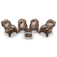 Conjunto De Poltronas Fibra Sintética Espreguiçadeira - 4 Poltronas + 1 Mesa Centro - Tecido Revieira Marrom