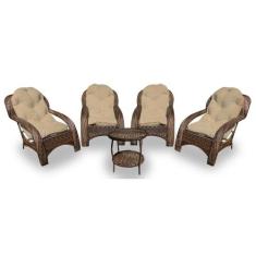 Conjunto de Poltronas Fibra Sintética Lisboa - 4 Poltronas + 1 Mesa Centro - Tecido Duna Deserto