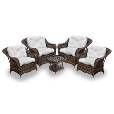 Conjunto de Poltronas Fibra Sintética Nairóbi - 4 Poltronas + 1 Mesa Centro - Tecido Revieira Marrom