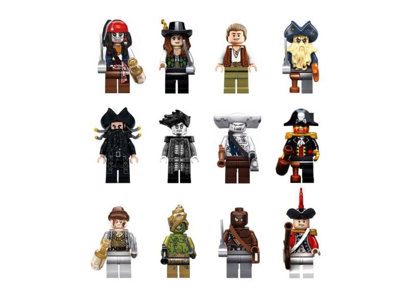 Kit 12 Bonecos Piratas Do Caribe Miniaturas Blocos De Montar