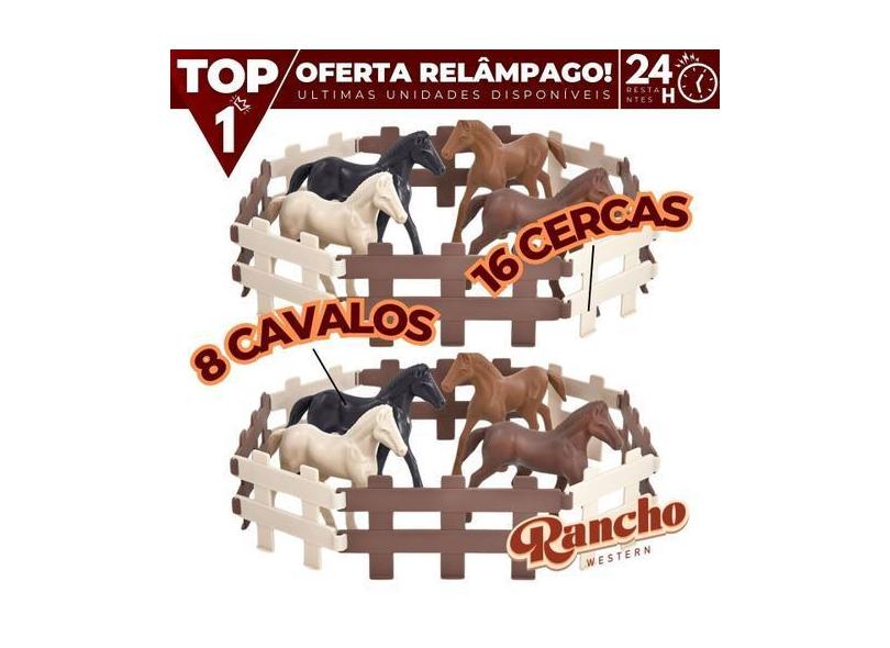 Kit Brinquedo Miniatura Cavalo Cavalinho C/ Cercas Fazenda Rancho West
