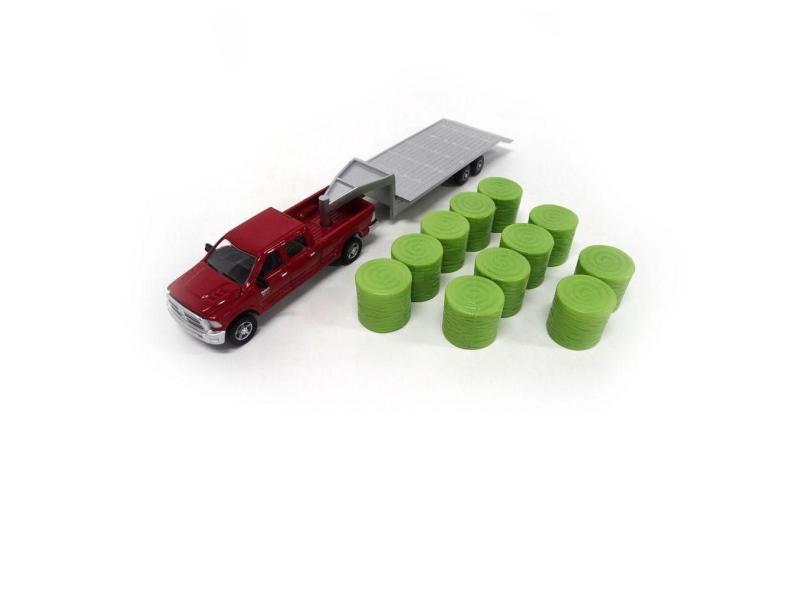 Miniatura Camionete Dodge Ram 2500 Com Trailer e Fardos 1/64