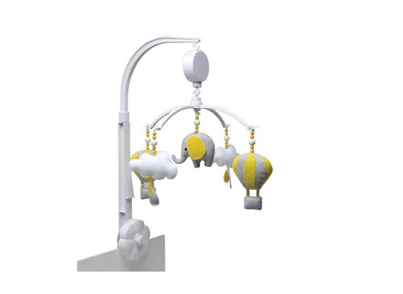 Móbile Musical Elefante Balão Cinza Quarto Bebê Infantil Menina Menino