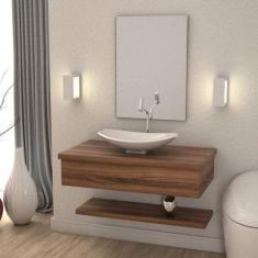 Bancada Para Banheiro 80Cm Com Cuba Canoa L45 Prateleira E Espelheira 806W Metrópole Compace