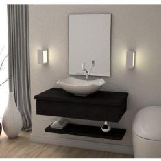 Conjunto Para Banheiro Gabinete 80Cm Cuba Abaulada L42 Prateleira E Espelheira 806W Metrópole Compace Onix