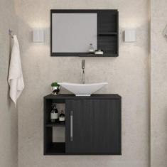 Conjunto Para Banheiro Gabinete Com Cuba Folha L38 E Espelheira Laura 600 Yescasa Carvalho Dark/ Chess