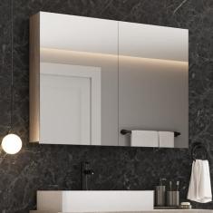 Espelheira Para Banheiro 2 Portas 2 Prateleiras Móveis Bosi Barrique/argento