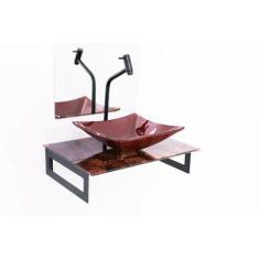 Gabinete De Vidro 50Cm Com Cuba Quadrada - Mármore Ado