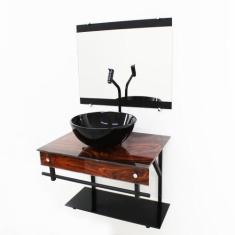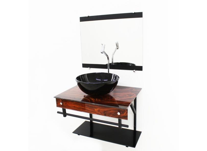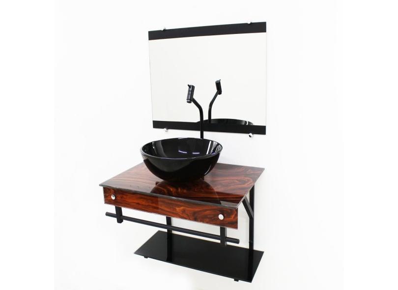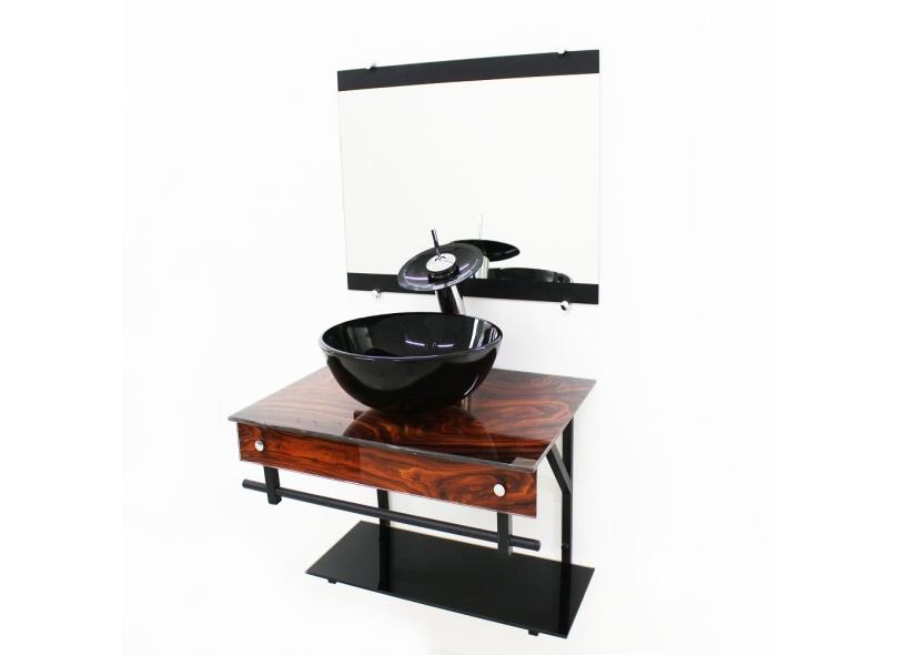 Gabinete De Vidro 60Cm Apx Com Cuba Redonda - Madeira Nogueira