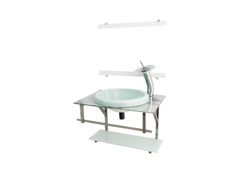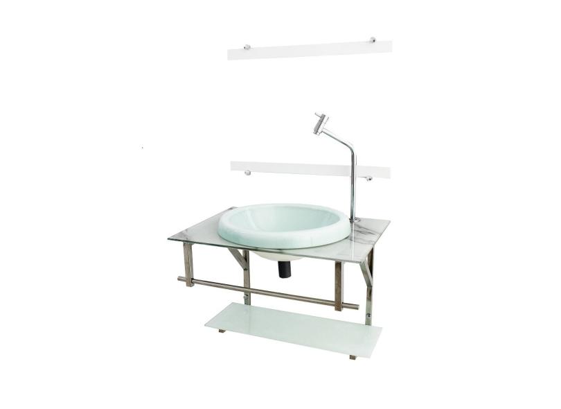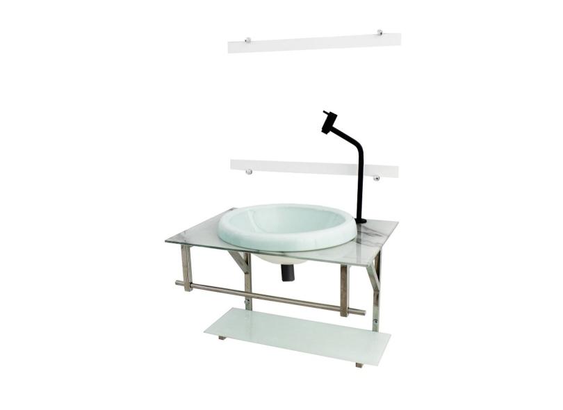 Gabinete De Vidro Para Banheiro Iq 70cm Inox Com Cuba Chapeu - Mármore