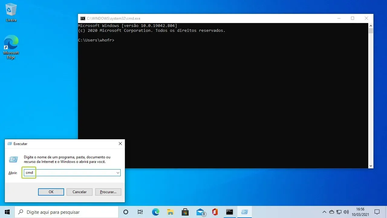 Passo 1: Pressione Windows + R, digite "CMD" e pressione Enter para abrir o Prompt de Comando.