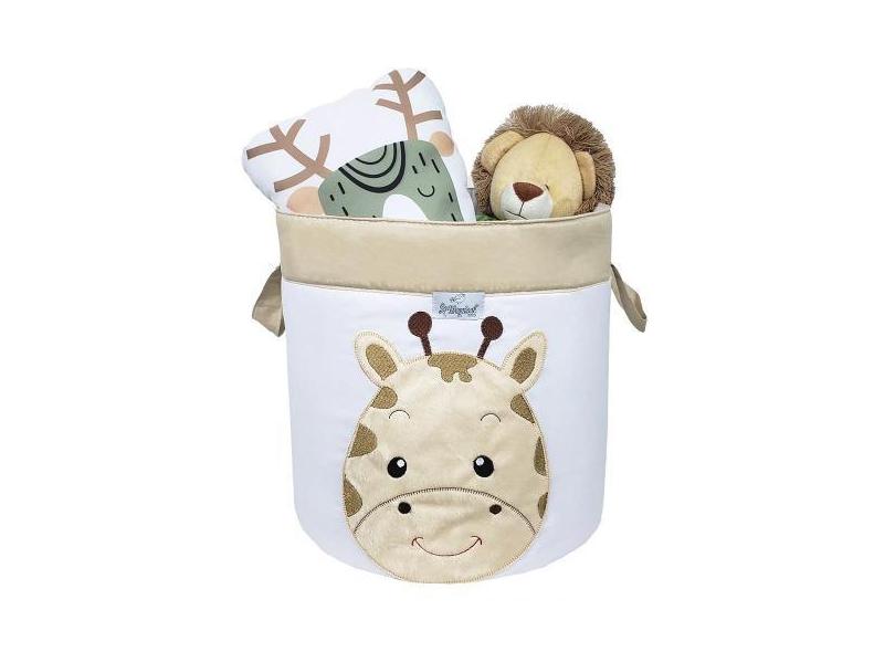 Cesto Organizador De Brinquedos Bordado Girafa Caqui - Tropical Baby