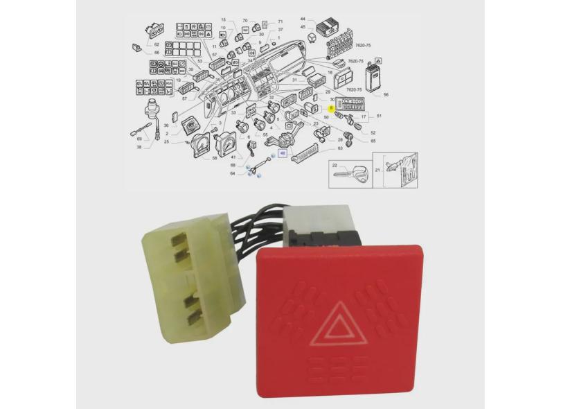 Botão interruptor pisca alerta iveco stralis 380/420 2004 A 2007/EUROTECH 370/420 1997 A 2005/EUROTRAKKER 370/420 1997 A 2005/NOVO trakker 380/420 2008 A 2011 500388626