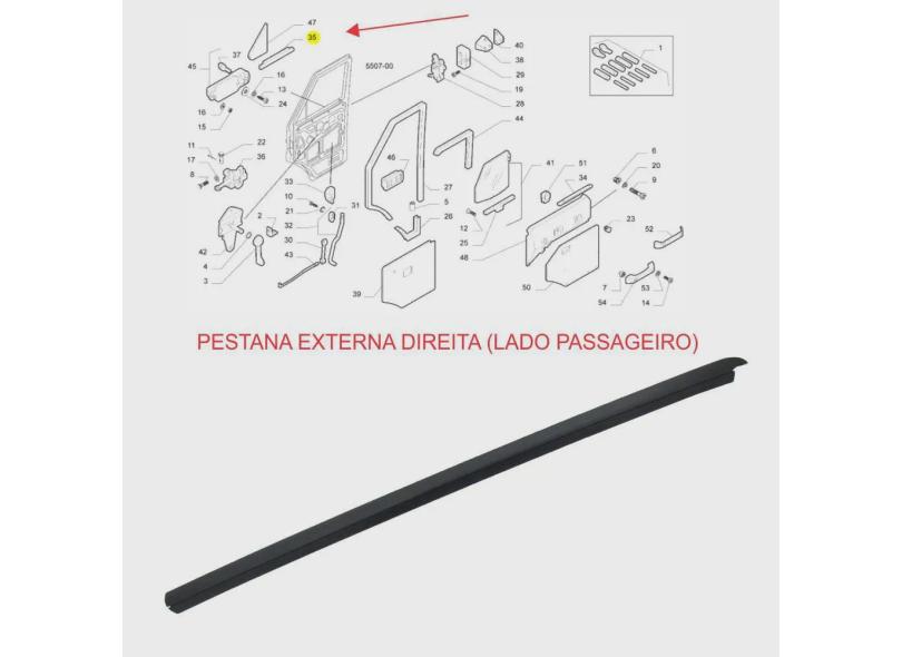 Pestana externa vidro porta dianteira direita iveco daily 3510/3513/3813/4013/4910/4912/5013/6012/6013/7012/7013 1997 A 2007 93943296 C