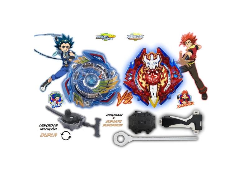 Kit 2 Beyblade Burst + 2 Lançador Valtryek Vs Xcalius X2 Valt e Xander
