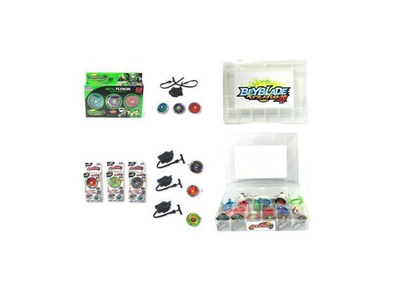 Kit 6 Beyblade Pião Tornado Metal Fusion + 4 Lançadores + Maleta - Lia