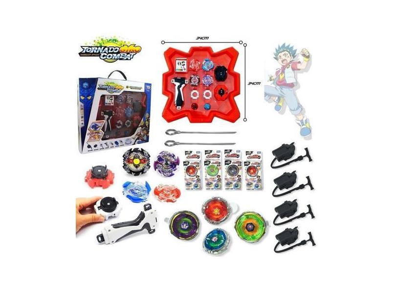 Maleta Beyblade 8 Beyblades Com Lançador + Arena De Beyblade - Tornado