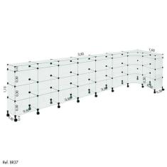 Balcão de Atendimento L Modulado em Vidro com Rodízios 3,50 x 1,10 x 1,00
