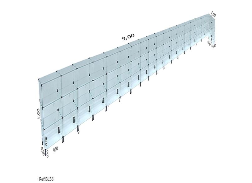 Balcão L em Vidro Temperado -9,00 x 1,00 x 0,30