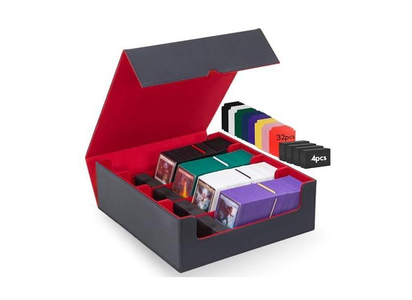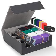 Zettokete Caixa de armazenamento de cartões colecionáveis 2400+, caixa de baralho MTG de 4 fileiras com 32 divisórias de cartão e 4 tampas de espuma, estojo de cartão MTG adequado para magia, Yugioh,