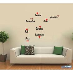 Adesivo Decorativo de Parede Palavras Saúde Gratidão Coração