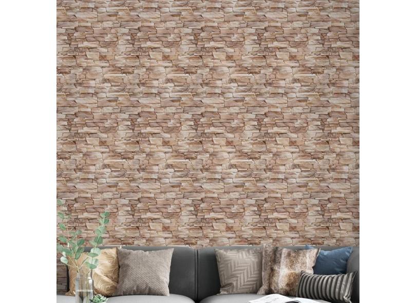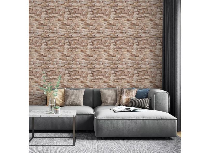 Papel De Parede Adesivo 3D Pedras Bege Np090 Rolo 0,58X3M