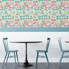 Papel De Parede Adesivo Figurinhas N010119 Rolo 0,58X3M